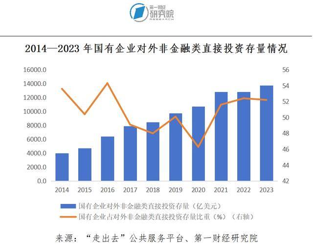 2000年,党的十五届五中全会提出“实施‘走出去’战略”,这标志着我国的对外开放从过去侧重引进为主,发展为“引进来”和“走出去”相结合。2001年年底,中国正式加入世界贸易组织,支持国有企业进一步开拓海外市场。从2011年的外贸情况来看,商务部外贸司公开数据显示,国有企业占进出口比重达到了20.9%。开拓市场、开展贸易活动往往需要海外投资的支持。2005年3月底政府公开信息显示,当时中央企业境外单位资产总额达到6299亿元人民币,中央境外企业和中央企业所属二级以上境外子企业数量达到了693户。根据《2012年度中国对外直接投资统计公报》,2012年末,中国非金融类对外直接投资存量的59.8%来自国有企业。